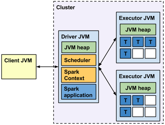 Cluster Manager 는 본 챕터의 아래 섹션에서 설명하겠지만, 다수개의 Spark 작업을 실행할 수 있도록 리소스를 관리해주는 Hadoop / AWS EMR 의 Yarn 혹은 Kubernetes 와 같은 클러스터를 말합니다.