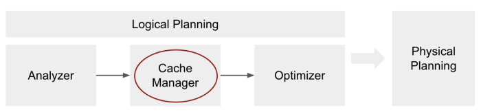 Spark 실행 계획중 논리 실행 계획이 만들어지는 단계에서 Optimizer (최적화 단계) 보다 Cache Manager 가 더 먼저 동작하기 때문입니다. Spark 는 최적화된 Transformation 을 이용해 Cache 를 어떻게 사용할지를 결정하는것이 아니라 Cache 를 사용한 그 이후에 최적화 한다고 볼 수 있습니다.